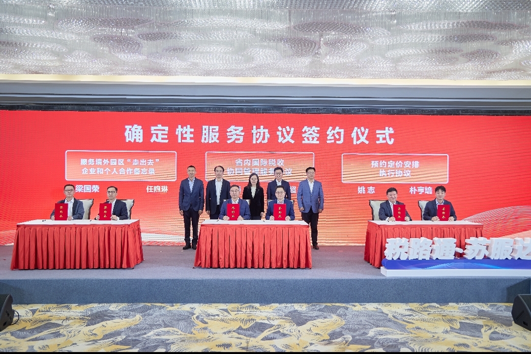会上,张家港市税务局和苏州当代制铁钢材有限公司签署预约订价安排扩充合同,江苏省税务局和苏州东山精密制造股份有限公司签署国际税收协同惩办劳动合同,南京市饱读楼区税务局和江苏省国外配合投资有限公司签署对于劳动中阿(联酋)产能配合示范园“走出去”企业和个东谈主配合备忘录。