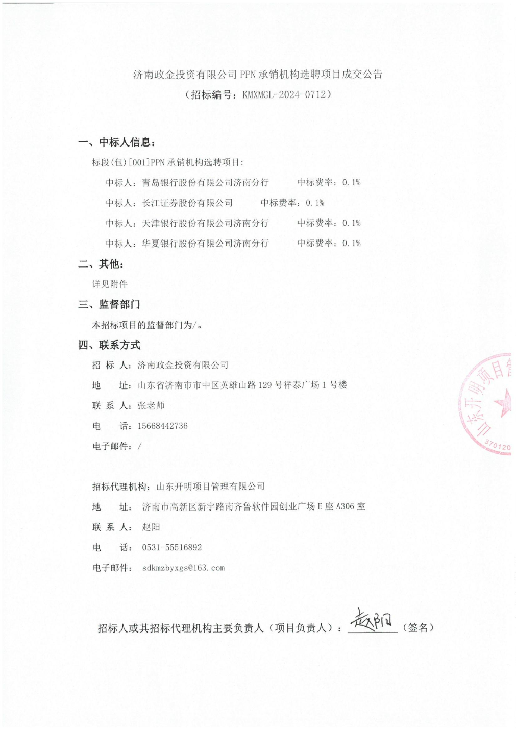 音信,笔据天眼查APP信息整理,8月2日公布的《济南政金投资有限公司PPN承销机构选聘名堂成交公告》中露馅中原银行股份有限公司济南分行中标。公告本色如下:
